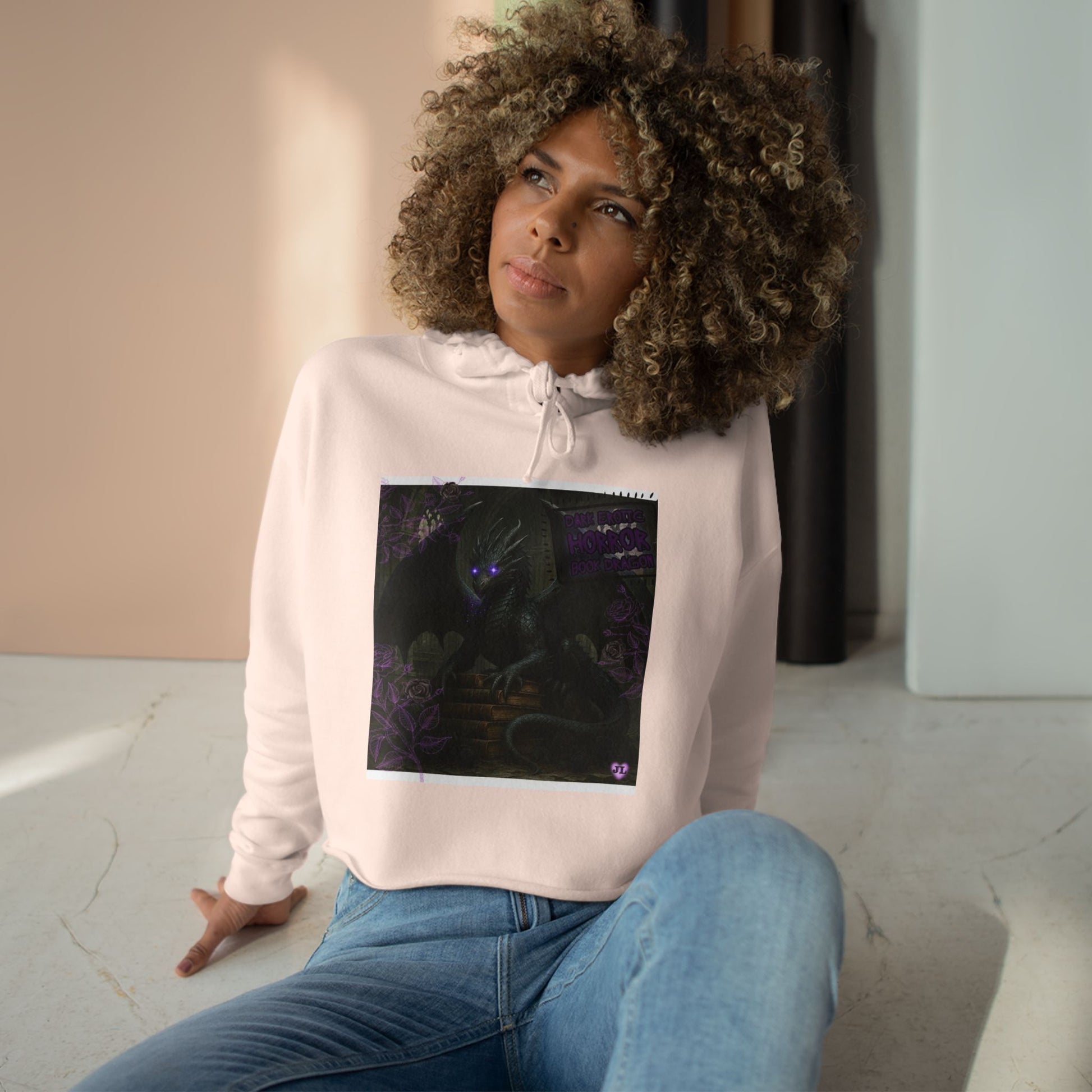 A cropped hoodie that feels like a quiet, midnight secret. The soft combed ring-spun cotton and recycled polyester blend gives it a gentle, almost brushed touch against the skin. Dropped shoulders and a relaxed cut let the hood fall easy and casual, while the raw hem and cropped length bring a modern, slightly rebellious silhouette. The deep, moody artwork printed on the front reads like a small, hidden poster—subtle from afar, rich in detail up close. Wear it layered over a high-waist jean or a long-line tee for a look that’s equal parts relaxed and intentional. Nights out with friends, late-studio sessions, or slow weekend coffee runs—this hoodie moves with the rhythm of someone who favors atmosphere and comfort over loud trends.